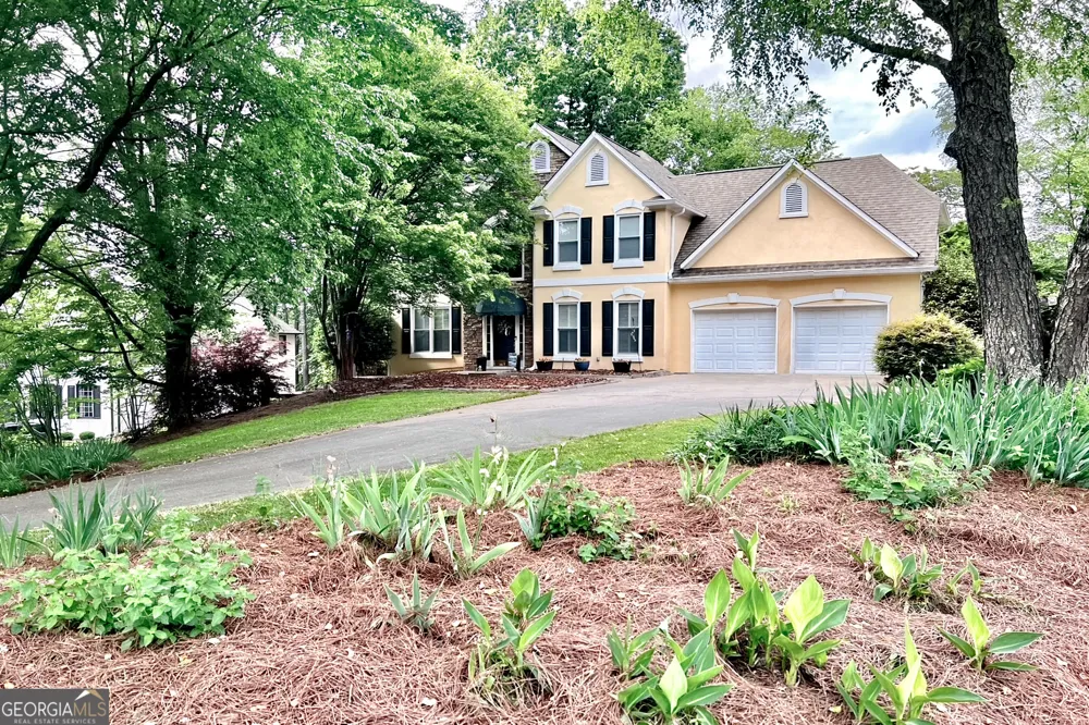 Don't miss this rare opportunity to own a beautiful home in the highly sought-after Waterstone neighborhood in Acworth! Situated on a large corner cul-de-sac lot, the meticulously landscaped yard features a serene koi pond with a waterfall and mature trees, creating a peaceful, park-like setting with excellent curb appeal. The current owners have lovingly maintained this home for over 22 years, making numerous thoughtful upgrades, including two new HVAC systems, Hardi Plank siding, and insulated Pella windows that fill the house with natural light. Inside, you will find an impressive 2-story foyer, a formal living room (currently used as a playroom), and a formal dining room with a tray ceiling - ideal for family gatherings. The spacious, updated kitchen boasts quartz countertops, abundant counter space, tile backsplash, stainless steel appliances, a large pantry, and is filled with natural light. It flows seamlessly into the family room, with a cozy fireplace and access to the back deck, perfect for entertaining or relaxing. Upstairs, the expansive master suite serves as a tranquil retreat, complete with a separate sitting area, two walk-in closets, and an updated en-suite bathroom with dual sinks, a jetted tub, and a separate tile shower. Three additional spacious bedrooms with lots of closet space, an updated bathroom with dual sinks, and the convenience of an upstairs laundry room. The oversized 2-car garage features built-in shelving for extra storage. Conveniently located near both Downtown Acworth & Downtown Kennesaw provides lots of options for shopping, restaurants, and parks, as well as Kennesaw State University, Lake Allatoona, I-75, and less than a mile from the I-75 Express Lane, which provides an easy commute to Atlanta. The Waterstone community offers a pool, playground, and brand-new tennis and pickleball courts. The HOA hosts various social events throughout the year, fostering a strong sense of community. With close proximity to excellent Cobb County schools, this home is perfect for those looking for a vibrant, welcoming neighborhood for their family to call home.
